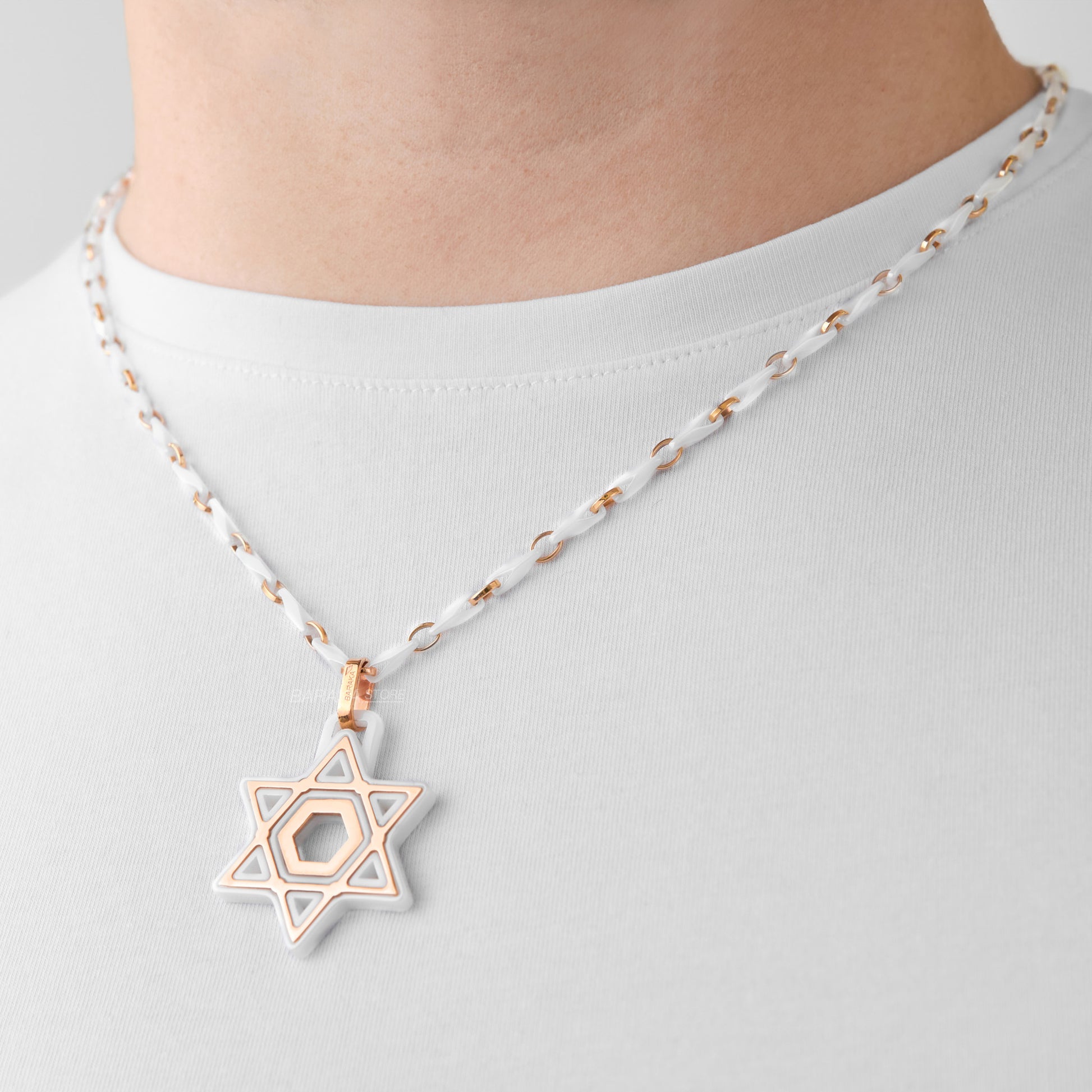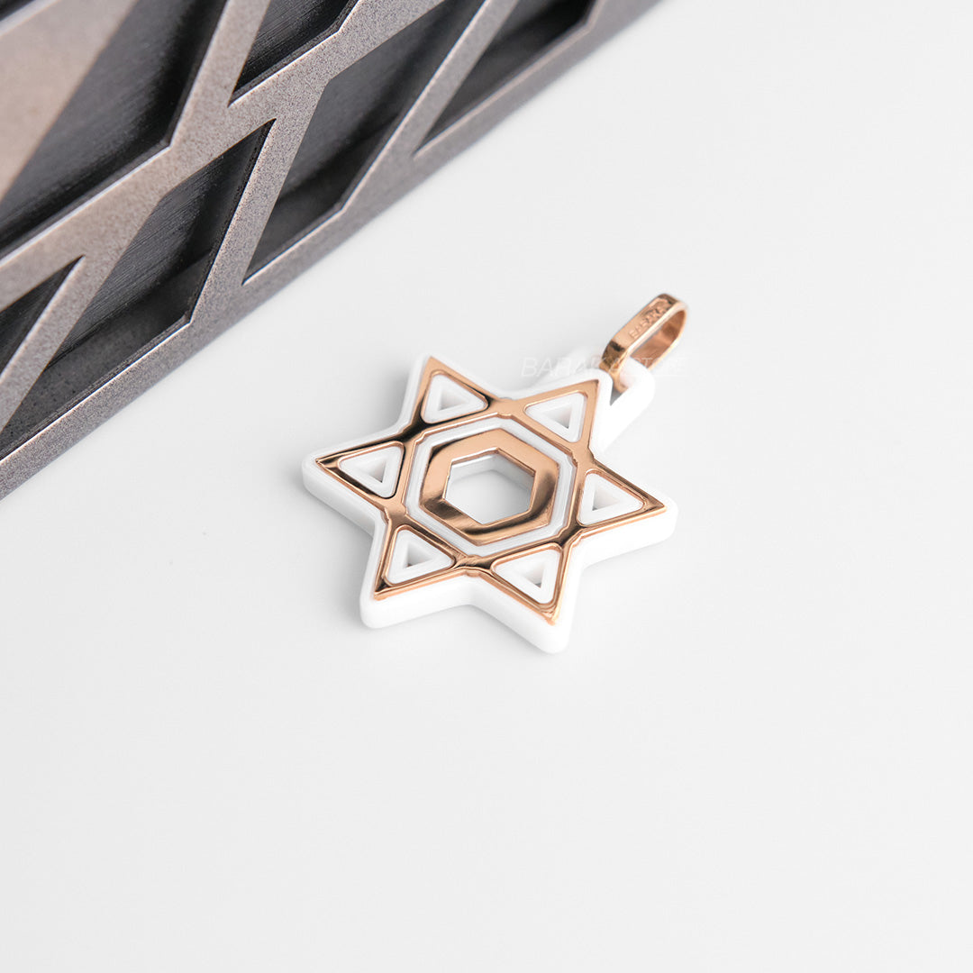 White ceramic pendant (Star of David) with rose gold.