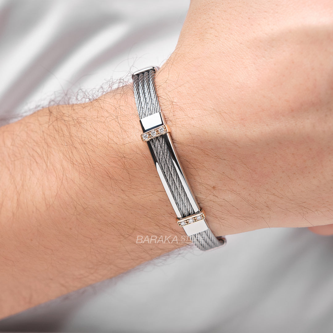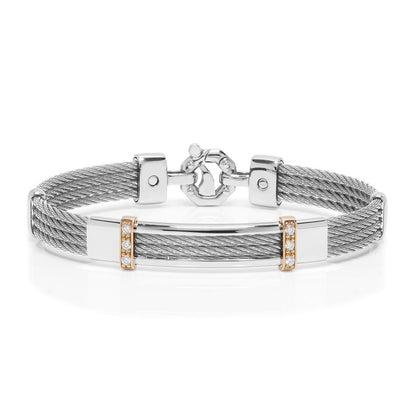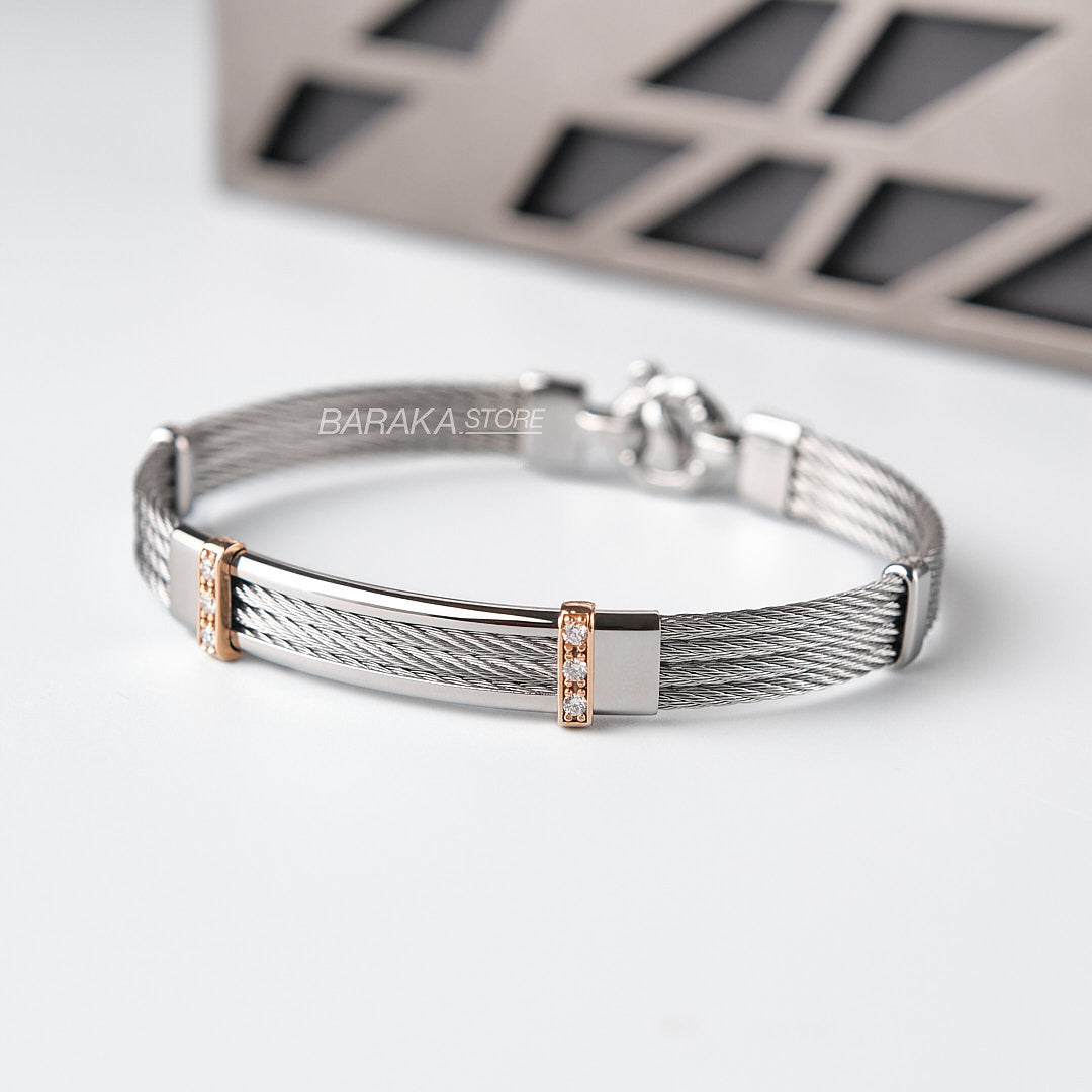 Браслет из нержавеющей стали с розовым золотом и белыми бриллиантами. Белый бриллиант в застежке.