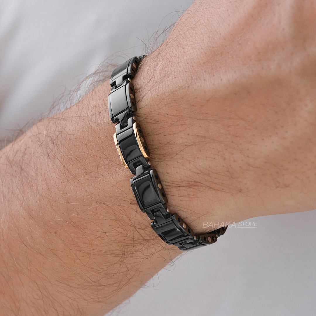 Браслет из нержавеющей стали с черным PVD-покрытием и розовым золотом. Белый бриллиант в застежке.