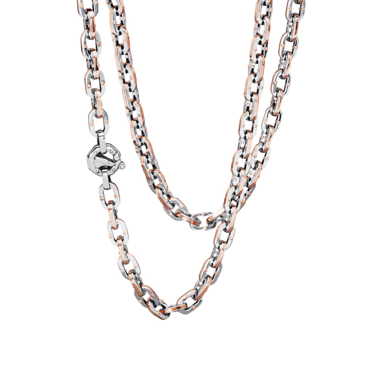 Цепочка из белого и розового золота. Золотая застежка с белым бриллиантом.